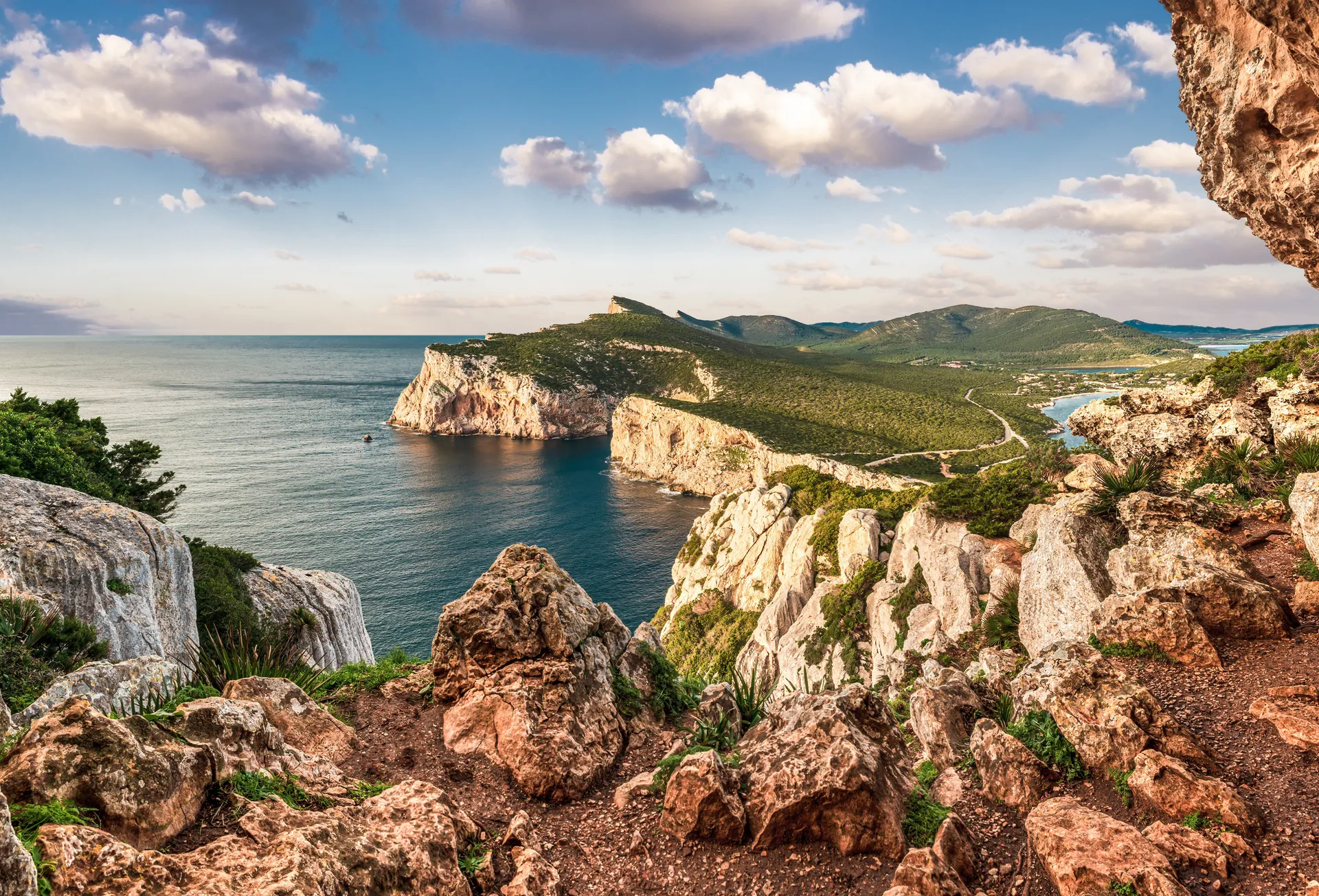 Venture inland to experience a vastly different aspect of Sardinia. Here, the landscape is a sun-baked stretch of ‘macchia’ grassland and jagged granite mountains, reminiscent of the Dolomites in Italy. Ascend hills covered in dense forests of cork trees: during harvest season, you may notice that many trees have been stripped of their bark for cork production. Much of Italy’s cork is produced in Sardinia. Visit a local cork factory to learn about the fascinating production techniques and many uses of this versatile material. For lunch, enjoy a feast for the senses at a family-run agriturismo, a converted farmhouse serving hearty traditional meals made with produce fresh from the farm. The rustic surroundings, displays of old farming equipment, and crackling open fires create a wonderful, authentic atmosphere, perfect for enjoying Sardinian dishes made with local ingredients. Continue to your hotel on the beachfront in Porto Conte, the perfect location to unwind after a day of exploration.