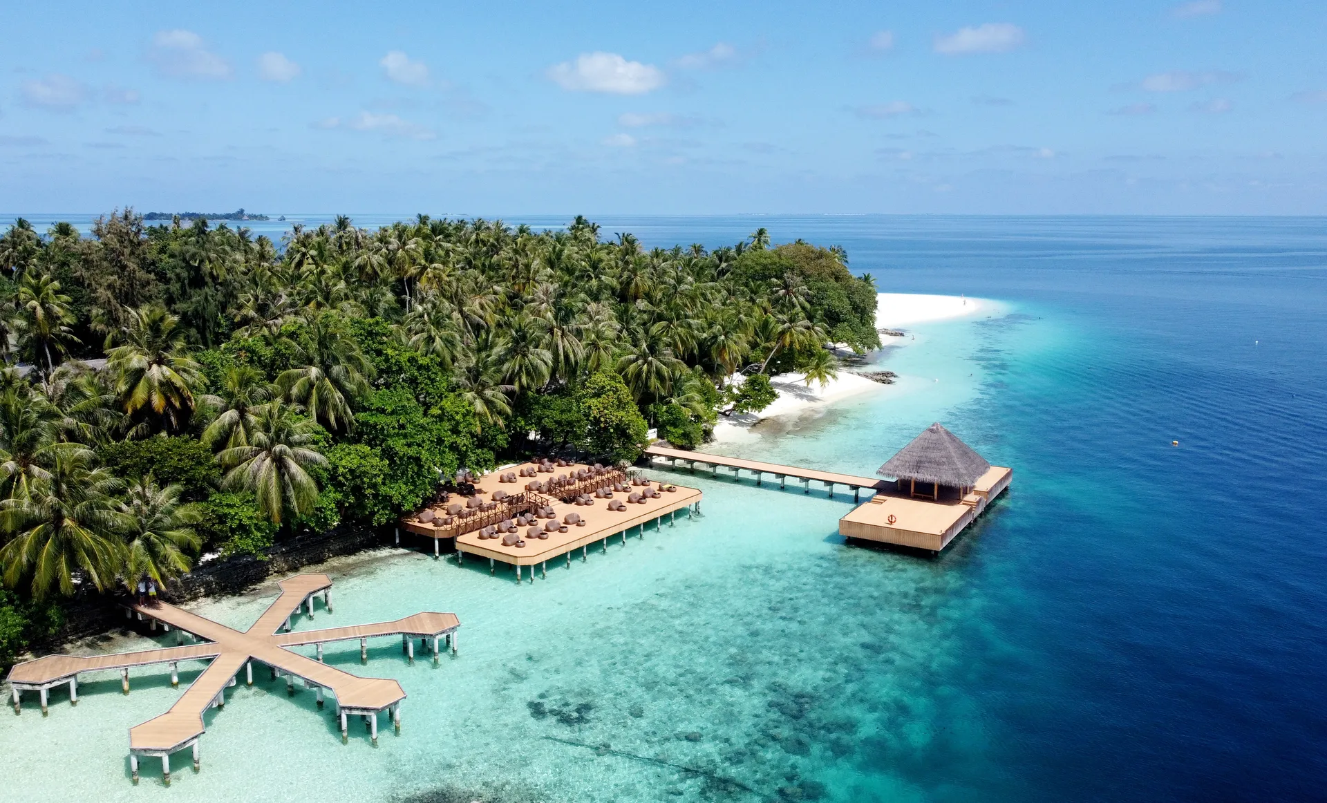 Perched on the southwestern edge of the atoll, just 28 km from Malé International Airport, Fihalhohi Resort is a scenic 45-minute speedboat ride away. Spanning 80,000 square meters, the island is a lush sanctuary of emerald foliage and swaying coconut palms, gently embraced by soft white sands. Nature takes center stage here—beautifully preserved and lightly enhanced for your comfort.